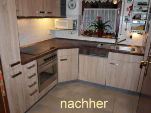 • liefern neue Arbeitsplatten und Spülen (Spülen unter www.blanco-germany.com/de und www.franke.de)